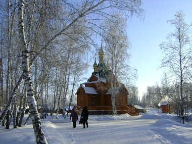 Недалеко от источника еще один замечательный храм во имя мучениц Веры, Надежды, Любви и матери их Софии — настоящая жемчужина деревянного храмового зодчества. Нижний придел храма освящен во имя прославленного святителя Сильвестра — первого новомученика омского.