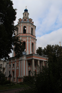 Колокольню построили в 1748 году в классическом стиле. На одной из старых гравюр она была изображена 4-гранной, с большими арками в верхнем ярусе, который завершал 4-скатный шатёр, увенчанный небольшой главкой с крестом.