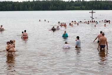 Возрождение монастыря началось в 1994 году установкой поклонного креста на Святом озере.
