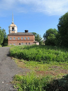 Кое-где по стенам паперти и церкви развешены в одиночку иконы старинного иконостаса, но подновленные и заолифенные".