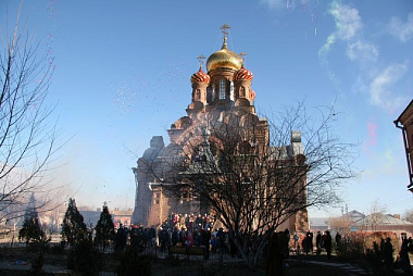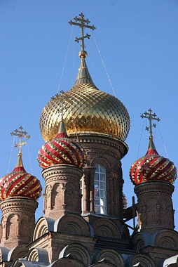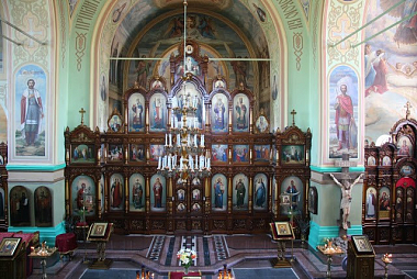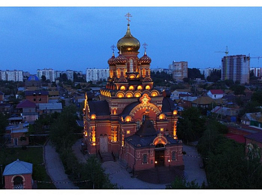От железнодорожного вокзала пешком – 20 мин., троллейбус, автобус, маршрутное такси (любой номер, идущий мимо цирка). Остановка «Цирк». Далее – золотые купола подскажут вам дорогу.