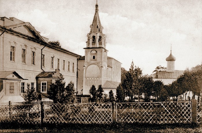 Воздвигнутая благоверным князем надвратная церковь в честь . апостола Андрея Первозванного была разобрана в конце XVIIIвека, а на ее месте в 1842 году построена колокольня, в первом ярусе которой помещались святые ворота, во втором – храм Успения Божией Матери, а в третьем – звонница с колоколами. Самый тяжелый из колоколов весил 498 пудов 35 фунтов (около 8 тонн). Высота всего здания – 58 метров.