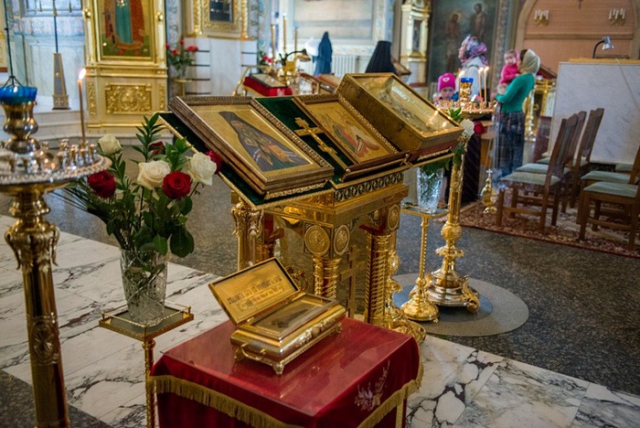 Сквозь узкие щелевидные окна падали лучи света, отражаясь от начищенного до блеска пола, сверкая на шитых серебром и золотом парчовых одеяниях алтаря, переливаясь блеском драгоценных камней на дорогих окладах иконостаса. На золотых подсвечниках мерцали восковые свечи, и по храму струился благоуханный кадильный дым византийского ладана.