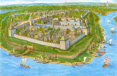 Княжеская часть города с дворцом и собором занимала юго-западный участок крепости (еще и сегодня здесь можно видеть остатки оплывших валов и заболоченного рва).