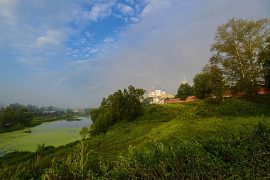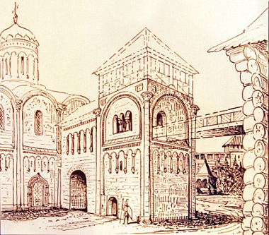 Поверх валов были воздвигнуты белокаменные стены с боевыми башнями. За валами располагались рвы, наполненные водой. В плане крепость представляла собою четырехугольник неправильной формы, самая протяженная сторона которого выходила к крутому берегу Клязьмы. С тех пор русло реки, образовавшее большую пойму, отошло к югу от боголюбовских высот, – в древности же оно пролегало у самого их подножия, оставив здесь заболоченное озеро, носившее название Старой Клязьмы.