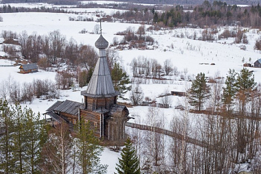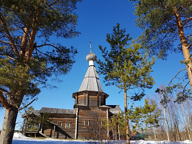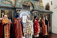 Храмовая часть церкви Мартиниана - восьмерик на четверике - перекрыта большим шатром с восьмигранным световым барабаном, увенчанным главой луковичной формы. В ХIХ веке церковь была увеличена за счет пристройки трапезы вдоль ризницы собора. Снаружи шатер обшит осиновыми досками с зубчатыми краями, имитирующими чешую. Самой древней частью - 1483 год - в церкви является место погребения преподобного Мартиниана. От благолепного убранства уцелела только деревянная, резная с позолотой рака, установленная в 1646 году при царе Алексее Михайловиче, что следует из надписи на ней. В четырех кругах южной ее стороны, окруженных резным орнаментом, помещены выдержки из жития преподобного. В них кратко рассказывается о его погребении, обретении мощей и первых чудесах исцелений, происшедших у гроба.