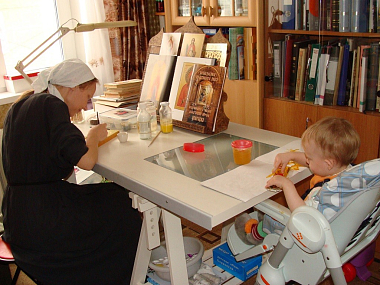В связи с малым количеством насельниц в монастыре есть наемные помощники–сотрудники: это повара, уборщица, свечницы, цветочницы-садоводы, воспитатели и преподаватели для детей.
