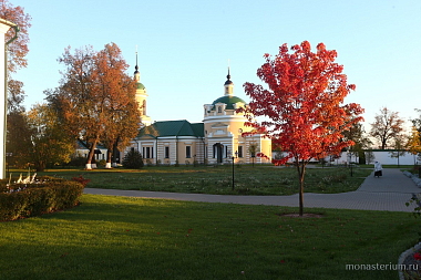 При входе в Аносинскую обитель по левую руку от Святых врат встречает богомольцев нарядная церковь святителя Димитрия Ростовского, выстроенная в стиле «ампир».