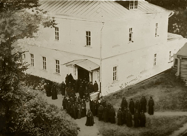 Именно здесь поселили первых прибывших после открытия монастыря в 1992 году сестер, разобрав перед их приездом пол и сняв двери. Вокруг корпуса были заросли бурьяна выше человеческого роста. При этом корпус отделялся от остальной территории монастыря жлезобетонной стеной с колючей проволокой наверху, которую приходилось перелезать, чтобы добраться до храма (свт. Димитрия Ростовского).