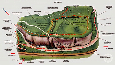 Сюда же в VII в. был сослан св. епископ Мартин. В VI в. византийцами была построена здесь крепость Каламита, а позднее, в VIII–IX вв. в скале над крепостью начали вырубать пещерные помещения, церкви и кельи, где обосновывались монахи-иконопочитатели из Византии, преследовавшиеся в период иконоборчества. Руины крепости сохранились до наших дней.
