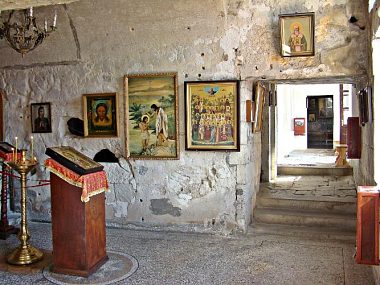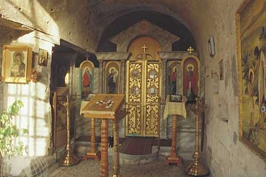 Древняя церковь в честь священномученика . Климента, высеченная в скале, стала первым действующим храмом обители. Предание говорит о том, что этот храм был высечен руками самого св. Климента. Это древнейшая из пещерных церквей Инкермана. Храм повторял в своих основных чертах архитектуру наземных церквей.