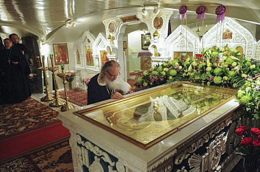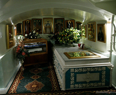 Воистину духовным центром всего монастыря можно назвать усыпальницу дорого Батюшки, где почивают его святые мощи.