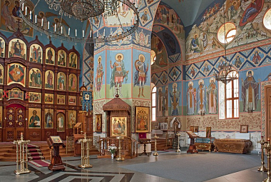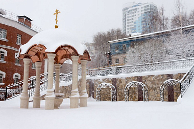 Красно – белое здание монастырской часовни с иконой Царя - Страстотерпца над входом еще одно утверждение незыблемости православной веры, крепости духа российского народа и поклонения памяти мученикам.