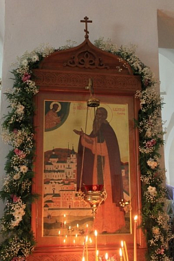 В 1697 году на средства царевны Татьяны Михайловны вместо обветшавшего деревянного храма был построен двухэтажный каменный. Верхний ярус — в честь Воскресения Словущего, нижний — в честь Смоленской иконы Божией Матери с приделом святителя Тихона Амафунтского. В этом приделе находился склеп с гробницей над местом погребения преподобного Тихона. В 1760-х годах вместо придела нижнего яруса был сооружен каменный притвор. В склепе хранилась икона Святого в полный рост.