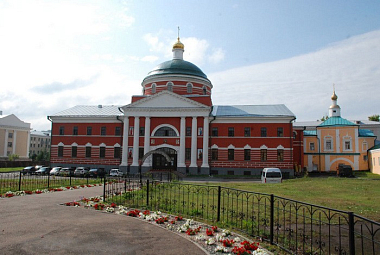 По монастырским документам она построена в 1807-1825 гг. (строительство прерывалось пожаром 1815 года) по проекту архитектора Я.М. Шелковникова на средства дворян Мусиных-Пушкиных.