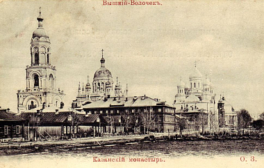Казанский женский монастырь в городе Вышний Волочек основан на месте явления чудотворной Казанской иконы Божией Матери, на протяжении нескольких веков являвшейся великой святыней вышневолоцкой земли. На месте ее явления, у святого источника, была воздвигнута для ее пребывания часовня, а впоследствии – храм с колокольней, где чудотворный образ находился вплоть до разорения обители после революции, привлекая к себе множество паломников и богомольцев со всей Руси.