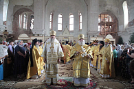 В том же году, в день памяти святителя Николая состоялась первая архиерейская служба, которую возглавил архиепископ Ярославский и Ростовский Кирилл, по окончании которой Владыка освятил крест малой главы. В 2004-2005 г.г. были установлены на купола остальные кресты, осуществлены дренажные работы по отводу воды из подвала храма, сделана временная металлическая ограда вокруг храма. Выстроен в притворе малый отапливаемый храм, освященный Владыкой Кириллом, в честь святителя Тихона, Патриарха Московского, в память о его посещении монастыря и освящении собора. В 2006 году монахиня Екатерина была переведена настоятельницей в Казанский женский монастырь г. Ярославля, на ее место была назначена монахиня Филарета (Гусакова).