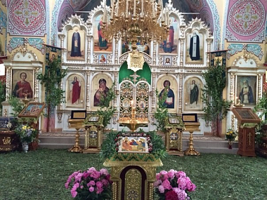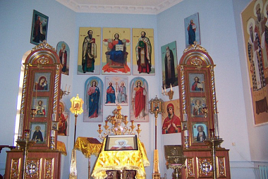До окончания строительства церкви Богослужения совершались в молитвенном доме. Деревянная церковь с одним престолом в честь святых первоверховных апостолов Петра и Павла была построена 1843 году и просуществовала до окончания строительства каменного храма.