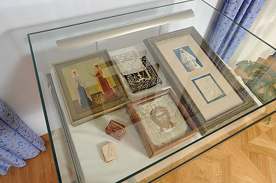 В музее собраны уникальные святыни: образ Спаса Нерукотворного, вышитый Великой княгиней, созданные ею иконы святых праведных Марфы и Марии, письмо к обительским сестрам, отправленное Великой Матушкой из Алапаевской ссылки. Среди экспонатов – чудом сохранившийся рояль Великой княгини, сервиз великокняжеской четы с их фамильным гербом, а также множество редких фотографий и документов. Настоящим украшением музея стали два портрета Великой княгини Елисаветы Феодоровны, написанные народным художником Василием Нестеренко.