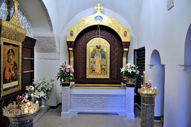 По замыслу настоятельницы он был устроен таким образом, чтобы тяжелобольные, не вставая с кровати, прямо из палат сквозь открытые двери могли видеть богослужение и слышать чтение молитв.