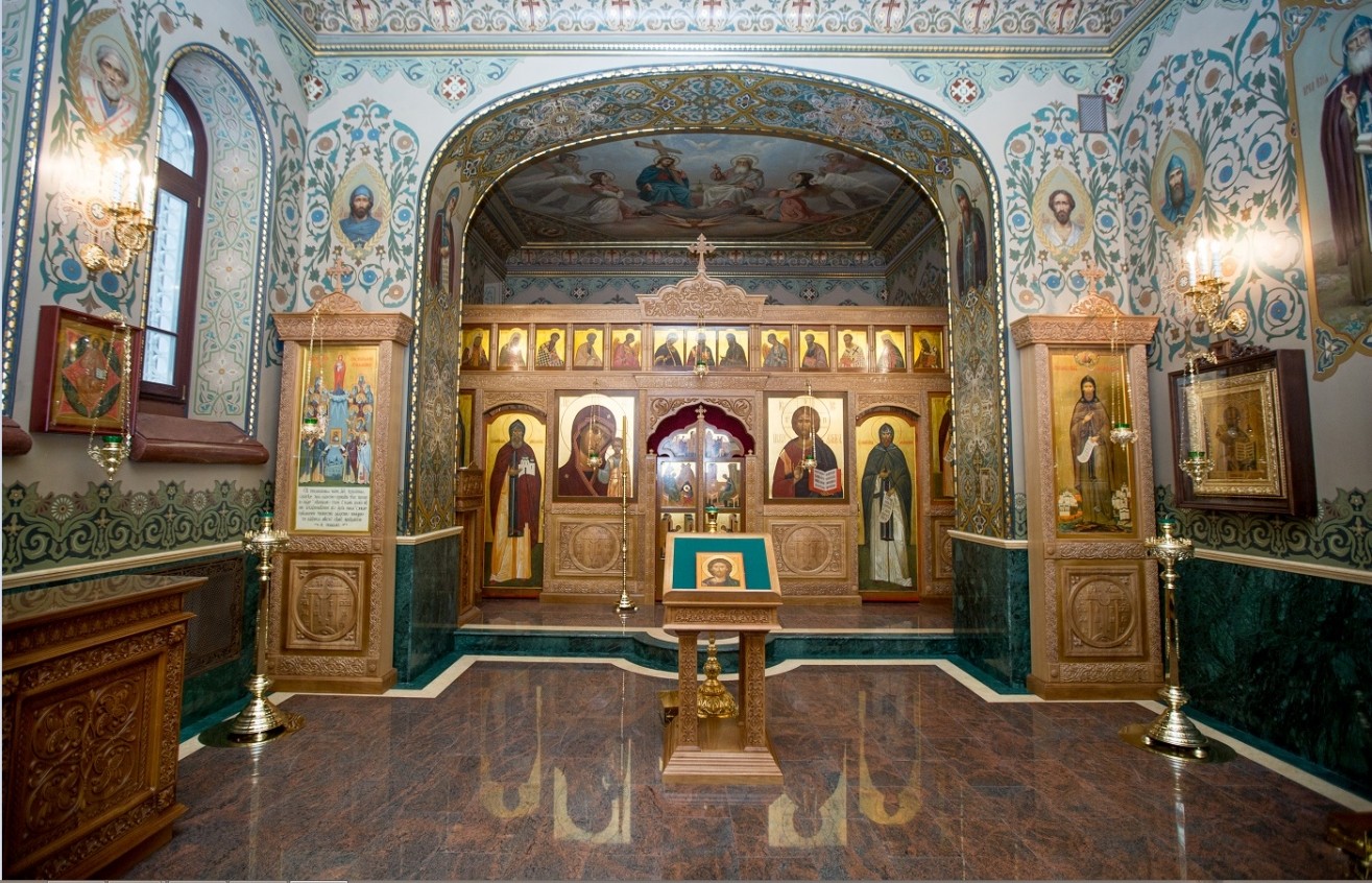 переоборудованная в госпиталь. В 1944—1945 годах несколько блестящих операций провел здесь хирург с мировым именем святитель Лука (Войно-Ясенецкий), приезжавший на Поместный Собор и заседания Священного Синода.