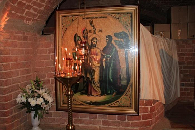 В этот храм перенесли 16 июня 1829 года чудотворную икону «Лобзание Христа Иудою» из деревянной монастырской пекарни, в которой свершилось чудо исцеления слепой женщины Татьяны Ивановны Кузнецовой.