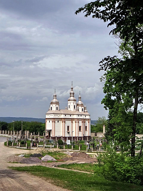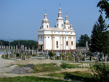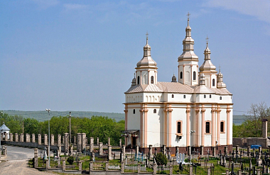 В целях защиты от нападений турок, здание возводили с толстыми стенами и боевой галереей на втором ярусе. При этом линии боковых стен и расстановка куполов храма асимметричны (в числе 7-ми разновысотных куполов есть крупные со световыми окнами и малые декоративные). В интерьере сохранились росписи XVIII в. Одновременно с храмом построена отдельная деревянная колокольня.