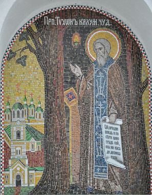 Восьмигранная часовня во имя прп. Тихона Калужского изначально была выстроена в 1838 году над остатками сломанного грозой Святого дуба преподобного Тихона. Она была разрушена в 30-е годы ХХ века.