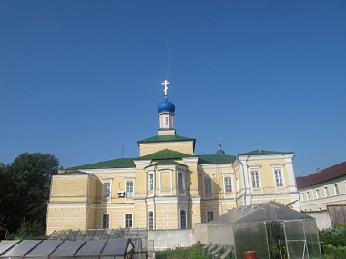 Собор был изначально построен и освящён на территории монастыря в конце XVII века на месте прежнего Трёхсвятительского храма, где были сокрыты под спудом мощи преподобного Тихона Калужского.