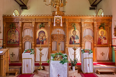 Иконостас в монастырской церкви был освящен в 2006 году и полностью состоит из резьбы. Работа выполнена в Сербии в стиле средневековой южносербской моравской школы. Иконы Христа и Божией Матери были созданы в монастыре в 1999 году Натальей Петровной Ермаковой из Москвы. Икона святителя Николая и икона Святых фризских земель были изготовлены учениками иконописной школы Польской православной церкви в Бельске-Подляском.