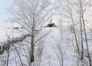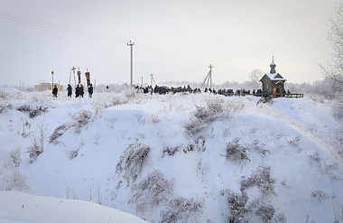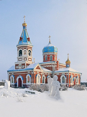 По красноярскому тракту. На 29-ом километре тракта будет поворот налево с указателем. От поворота до храма еще порядка 1,5 километров.