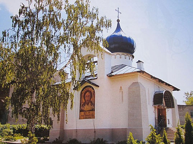 Первая церковь Успенского монастыря была деревянной и просуществовала 32, года в 1905 году ее разобрали и построили на этом месте каменный храм, освященный также в честь Казанской иконы Богородицы. Строительством храма руководил Ю. Скавронский. Скорее всего, этот храм возведен по проекту В.М. Васнецова.