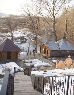 Еще одна святыня святой источник в честь Тихвинской иконы Божией Матери, который вместе с купальней и часовней находится под стенами монастыря.