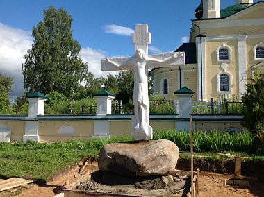 Нынешнее каменное здание храма построено в 1801 году на месте деревянного Никольского храма. Храм имел имел каменную ограду, а при ограде три башни, ворота с двумя калитками и в северо - западном углу каменная сторожка.