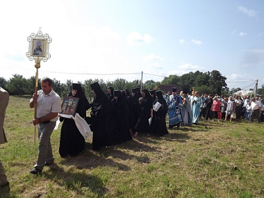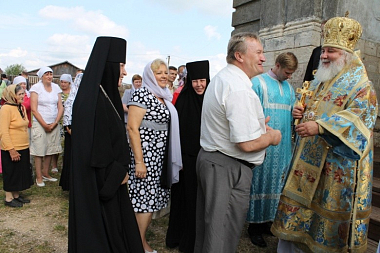 По окончании Литургии вокруг возрождающегося храма подворья был совершен торжественный крестный ход, после которого Высокопреосвященный Владыка Арсений обратился к Игумении Викторине, сестрам и прихожанам монастыря с архипастырским словом, передав всем присутствующим благословение Его Святейшества Святейшего Патриарха КИРИЛЛА и поздравив всех с праздником. Высокопреосвященный Владыка Арсений поблагодарил представителей администрации за доброе отношение к Игумении, насельницам и духовенству монастыря, которые стараются здесь, на лоне природы, создать своего рода оазис – место молитвы и духовного просвещения, и одновременно возродить памятник старины.