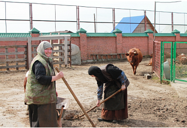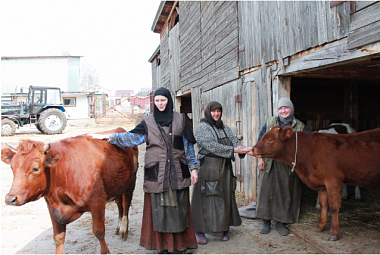 Трудно представить, что всего несколько лет назад вокруг храма был только пустырь с жилым одноэтажным домом (бывшая церковно-приходская школа) и сараи. После выезда жильцов дом был переделан под келии для сестер, построены трапезная, возведена монастырская ограда. Поскольку насельники монастырей кормятся плодами своих трудов, надо было подумать о постройке хозяйственного двора с фермой и птичником, гаража, теплицы и других хозяйственных строений. С приходом новых сестер возросла нужда и в жилье – еще одном сестринском корпусе. Много трудов было положено на благоустройство и озеленение территории монастыря, восстановление исторической ограды вокруг храма.