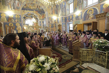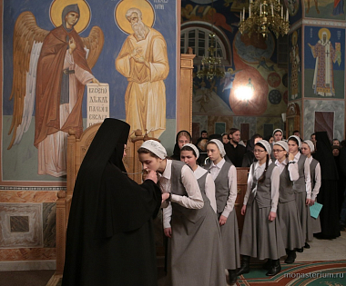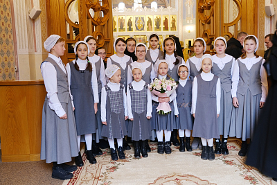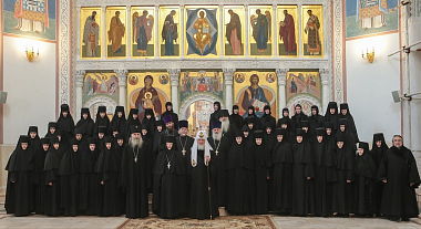 В своем слове Святейший Патриарх Кирилл сказал, что очень радостно видеть в храме много детей. Воспитанные в Православии дети, наши наследники, понесут дальше свет веры, особую христианскую любовь – за ними возрождение России. Святейший Владыка поблагодарил Матушку Игумению Олимпиаду за нелегкий труд по организации монастырского пансиона для девочек. (В 2015 году пансиону исполнилось 15 лет.) Его Святейшество высказал пожелание, чтобы все монастыри возрождали исконно русскую, православную традицию – воспитания детей при обителях. В истории России было немало случаев, когда выходцы из монастырских школ становились выдающимися политическими и общественными деятелями, а также были святыми подвижниками и учеными монахами. Святейший Владыка также уделил внимание монашеской жизни. По словам Его Святейшества, самым трудным из трех основных монашеских обетов – безбрачия, нестяжания и послушания – для сознания современного человека является обет послушания. «Но послушание не ограничивает человеческой свободы. Послушание Церкви – это свободная передача своей воли Господу».