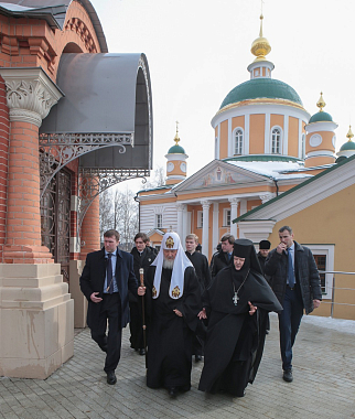 В 2009 году наследие Русской Православной Церкви, небольшой частицей которого является и Покровская обитель, принял Святейший Патриарх Московский и всея Руси Кирилл. В Великую Среду на Страстной Седмице Первосвятитель впервые посетил Хотьков монастырь. Литургия Преждеосвященных Даров была совершена в Покровском соборе. Святейшему Патриарху сослужили архиепископ Сергиево-Посадский Феогност с братией Лавры, архиепископ Орехово-Зуевский Алексий, духовенство Покровского монастыря и Москвы.