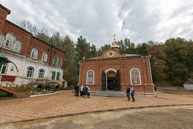 В 1867 г. в пустыни была закончена начатая иеромонахом Самуилом в 1855 г. постройка новой каменной церкви под железной кровлей с двумя престолами: по правую сторону престол во имя Трех святителей, а по левую — во имя св. мученицы Софии и трех дщерей её Веры, Надежды и Любови. Церковь построена иждивением московского почетного гражданина Григория Сергеева Васильева.