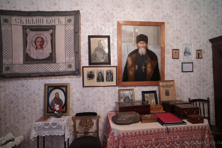 Ныне в величественном пятиглавом монастырском соборе пребывает главная святыня обители – явленная икона Успения Божией Матери, обретенная в XVI веке. Главный престол соборного храма освящен во имя Преславного Успения Пречистой Богоматери, престол северного придела – в честь Святителя Николая Чудотворца и св. вмч. Димитрия Солунского Мироточивого, южного – в честь преподобных Иоанна Лествичника и Серафима Саровского. Украшением Успенского собора является Пюхтицкая икона Божией Матери, история которой чудесным образом связана с именем святого праведного Иоанна Кронштадтского. В 1894 году сестры монастыря написали и подарили в день Ангела горячо любимому пастырю икону, на которой запечатлено явление Пресвятой Богородицы у источника в Пюхтице. Внизу на иконе подпись: «Протоиерею отцу Иоанну Ильичу Сергиеву, труд живописиц Успенскаго женскаго монастыря на Святой горе Эстляндской губернии. 1894 г. 19 октября». Эта икона пребывала с о. Иоанном до самой его кончины.