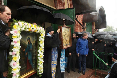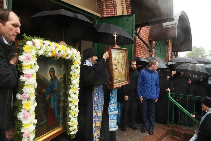 Ежегодно 15 августа (28 по н. с), в день Успения Пресвятой Богородицы, верующие совершали крестный ход с чудотворной иконой на Святую гору. Путь этот был не из легких: «Проезжих дорог не существовало вовсе, шли православные через болота и леса по узким тропам, по колено в болоте... икону несли поочередно, прижимая к груди», – записано в Сыренецкой летописи.