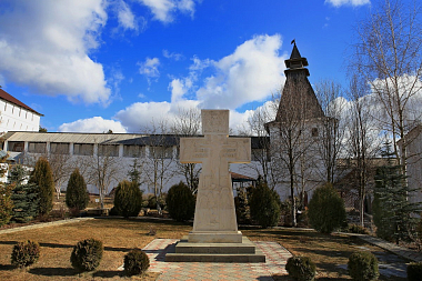 Можно выйти на остановке "Рябушки". Перейдя дорогу, спустится к монастырю, сначала по неасфальтированной дороге, затем направо, вдоль автодороги - выйти к главному входу монастыря. Это более длинный, но пологий путь!