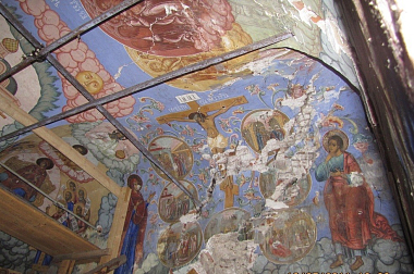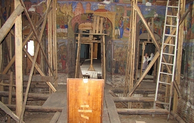 Одновременно подготовили Троицкий придел к богослужению: восстановили иконостас и заполнили его пока еще бумажными иконами, поставили песочные подсвечники, устроили аналой, приобрели богослужебные книги. В Вербное воскресенье в монастыре была совершена первая Божественная литургия.