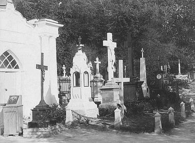 На территории кладбища до Великой Отечественной войны была устроена летняя киноплощадка. После войны на генплане 40–50-х гг. показаны деревья без указания на характер использования этой площадки и её функционального назначения. В 70-х и 80-х гг. на генпланах надпись: волейбольная площадка .