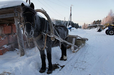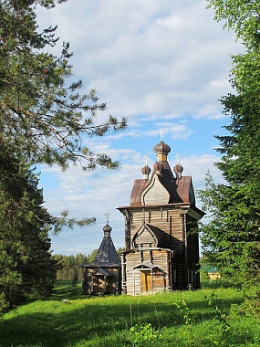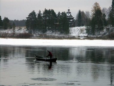 Есть здесь необычный 4 метровый крест, про который рассказывают, что несколько веков назад он приплыл на реке Пинеге против течения и остановился напротив церкви.