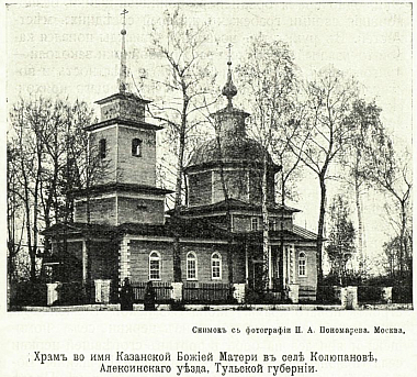 В начале шестнадцатого века образовалось село Колюпаново и, по местному преданию, уже тогда существовал храм на берегу Оки во имя иконы Божией матери Казанская. Известно, что в 1695 году в Колюпанове был выстроен новый деревянный храм во имя иконы Божией Матери Казанская. Он существовал до 1779 года. Но потом храм сгорел, а новую церковь строить не разрешили.