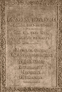 Именно в этом храме в июле 1855 года с особого разрешения преосвященного Димитрия, епископа Тульского и Белевского, погребена блаженная старица Евфросиния, Христа ради юродивая.
