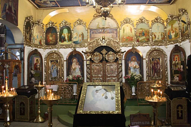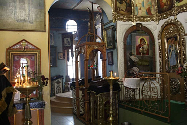 Свято-Никольский храм. Большая часть служб проходит в нем. Он разделен на 3 придела. Центральный придел- в честь Святителя Николая (зимнего, потому что день празднования 19 декабря). Слева от него- придел в честь иконы Божией Матери «Взыскание погибших» (день празднования- 18 февраля). Справа- придел в честь пророка Божьего Илии (день празднования- 2 августа).