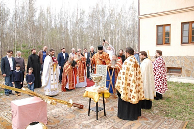 В течение месяца для первых насельников подворья был возведен небольшой дом с минимальными удобствами. Электричество вырабатывал бензиновый генератор, а воду приходилось брать из неглубокого колодца, расположенного неподалеку. Через несколько дней наместник Данилова монастыря архимандрит Алексий совершил освящение дома. Вскоре приехал и второй насельник, сразу же включившийся в подготовку к первому на подворье богослужению, которое состоялось 25 декабря, в день памяти святителя Спиридона Тримифунтского. В этот знаменательный день была совершена первая Божественная литургия в домовом храме во имя святителя Луки Симферопольского и Крымского.