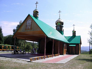 Между 1934-1936 гг. на территории скита был построен первый деревянный храм в честь преподобного Серафима Саровского, который простоял до 1954 годе. А в 1939 году иеромонахом Гермогеном был построен каменный храм.